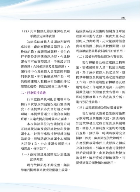 進部分,與號誌廠及維運中心團隊 排除,因此,廠商除提供故障碼外,
