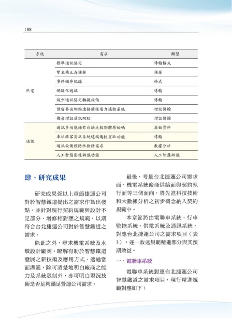 研究成果係以上章節捷運公司 行面等三個面向,將先進科技技術