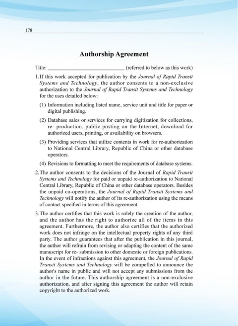 2. The author consents to the decisions of the Journal of Rapid Transit