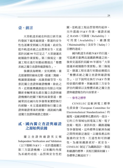 After the published regulation, the Independent Verification and Validation has 的經驗,本文透過實際執行獨立查 CENELEC 是 歐 洲 電 工 標 準