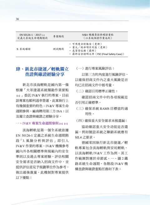 EN 50126-1:2017【1】 專案階段 IV&V 機構查證與確證重點