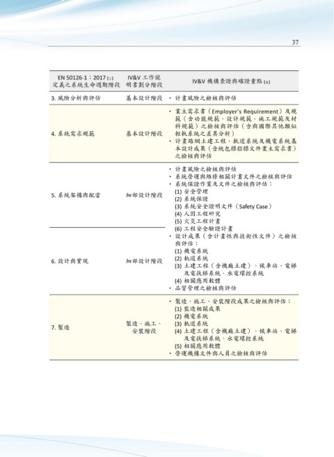 EN 50126-1:2017【1】 專案階段 IV&V 機構查證與確證重點 EN 50126-1:2017【1】 IV&V 工作說