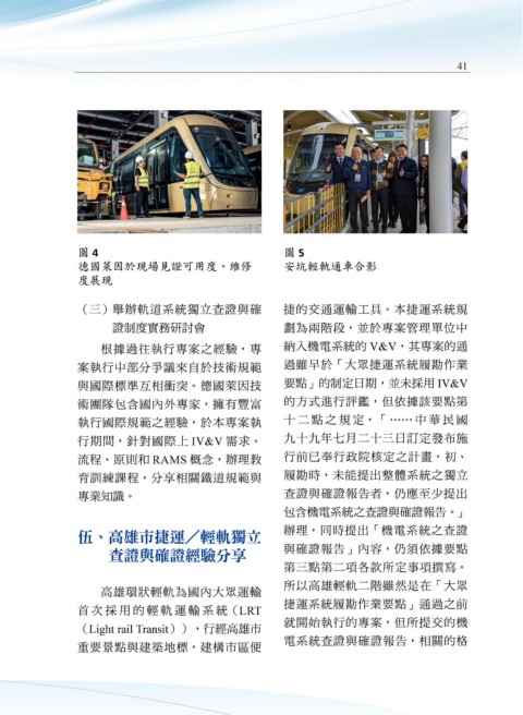 的系統應聘請 ISA 機構,故 因疫情之故,對於 ISA 機構無 德國萊因於現場見證可用度、維修 安坑輕軌通車合影