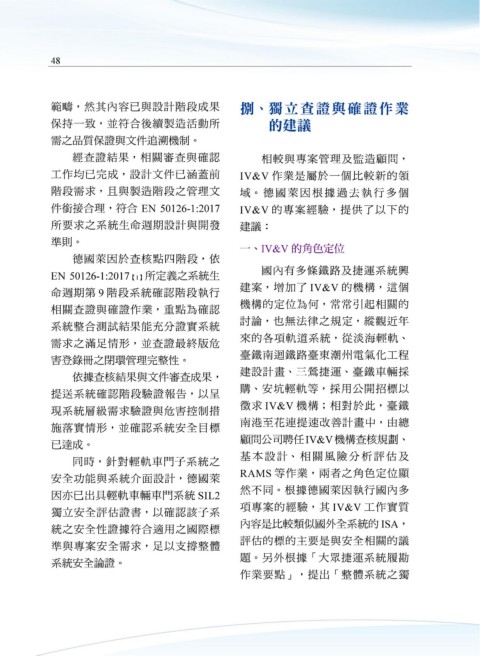 件銜接合理,符合 EN 50126-1:2017 IV&V 的專案經驗,提供了以下的