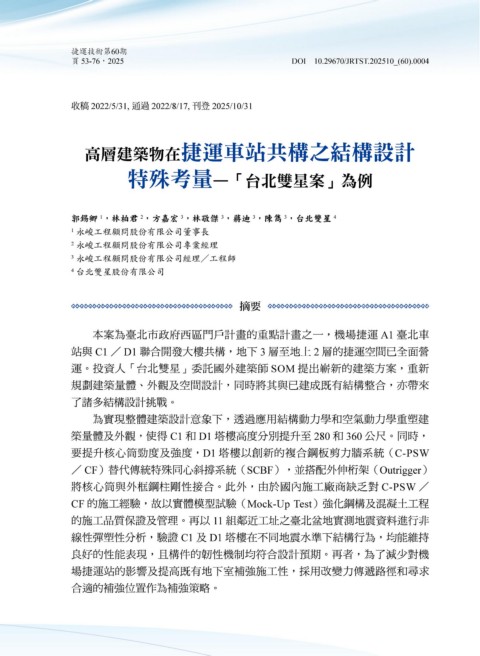 高層建築物在捷運車站共構之結構設計