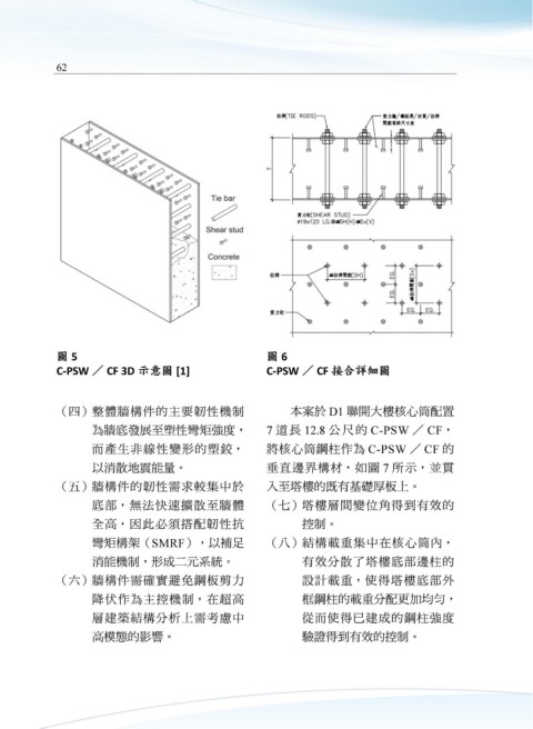 (四) 整體牆構件的主要韌性機制 本案於 D1 聯開大樓核心筒配置