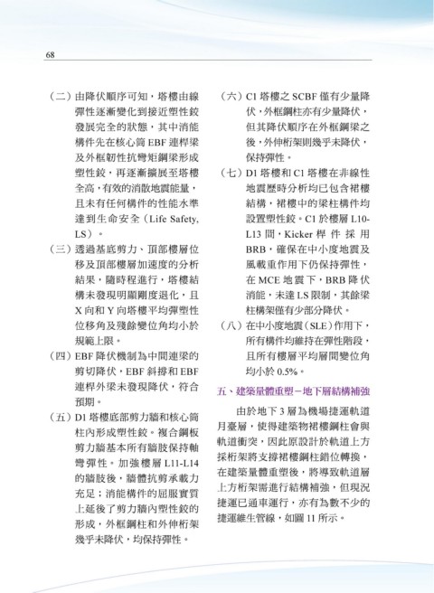 (二) 由降伏順序可知,塔樓由線 (六) C1 塔樓之 SCBF 僅有少量降