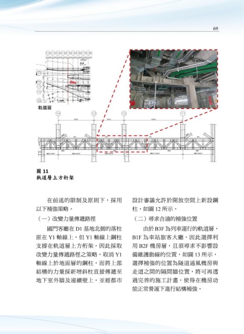 軌道衝突,因此原設計於軌道上方 支撐在軌道層上方桁架,因此採取 用 B2F 機房層,且須尋求不影響設