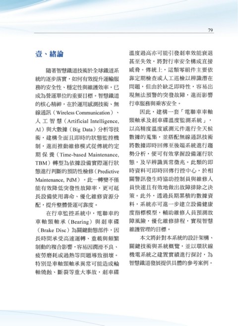 provides a reference direction for the future development of smart railways. 長時間承受高速運轉、重載與頻繁 本文將針對本系統的設計架構、