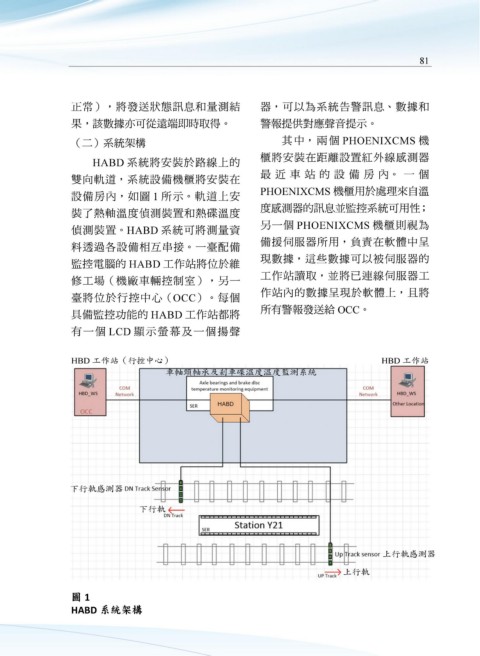 統為 A 型路權,與地面交通完全隔 PHOENIX MDS 主要涵蓋下列 裝了熱軸溫度偵測裝置和熱碟溫度 度感測器的訊息並監控系統可用性;
