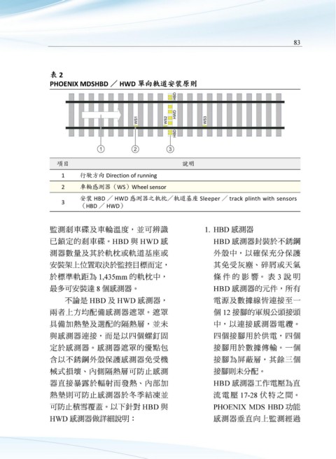 二、安裝設備 車輪感測器則夾於鋼軌上。感測器 表 2